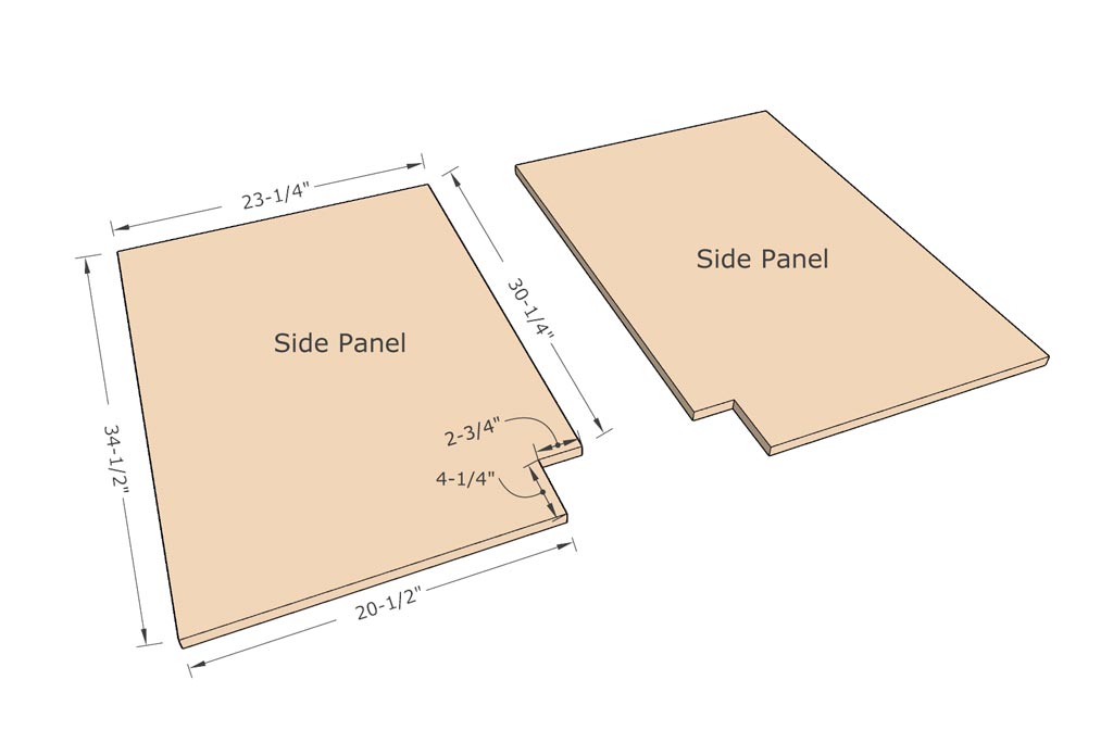 Use 1/4″ MDF board for the end panels. The measurements for the panels are exactly the same as the side panels.