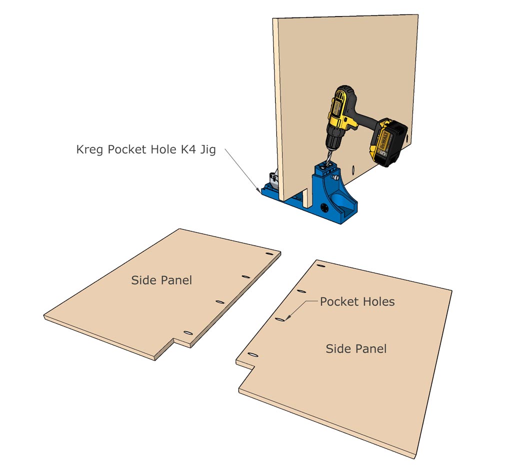Step 2 – Drill Pocket Holes on the Side Panels of the Cabinet