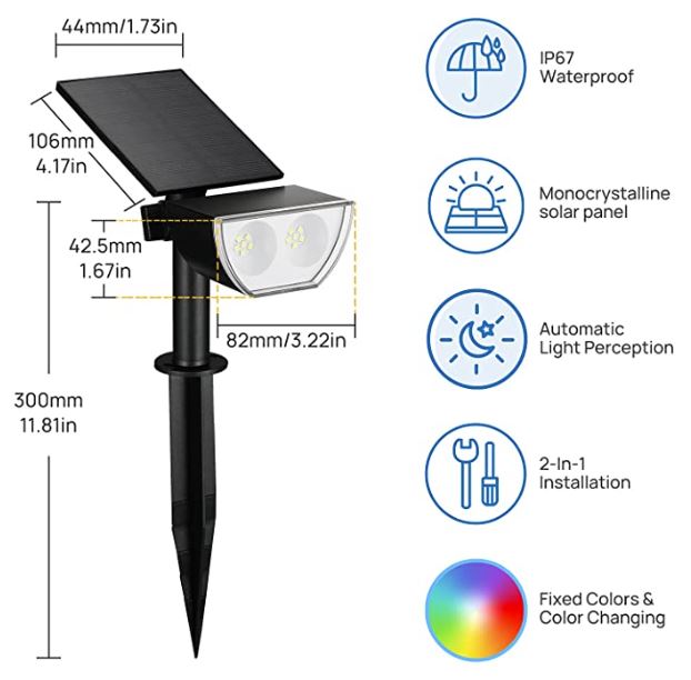 Likes and Dislikes: I like the multi-colored features, as this gives you the options to change things up. One thing that could be an issue is areas with long nights and little sunlight. These are solar-powered and charge – that means no changing batteries. This is good, but it also makes the light reliant on sunlight to function.