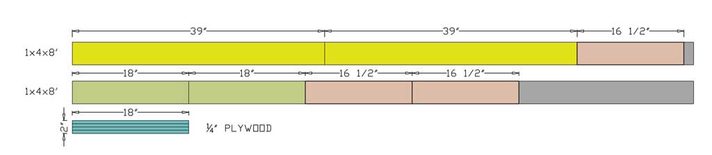 First, take 1×4 board and cut two 39″ pieces and two 18″ pieces.