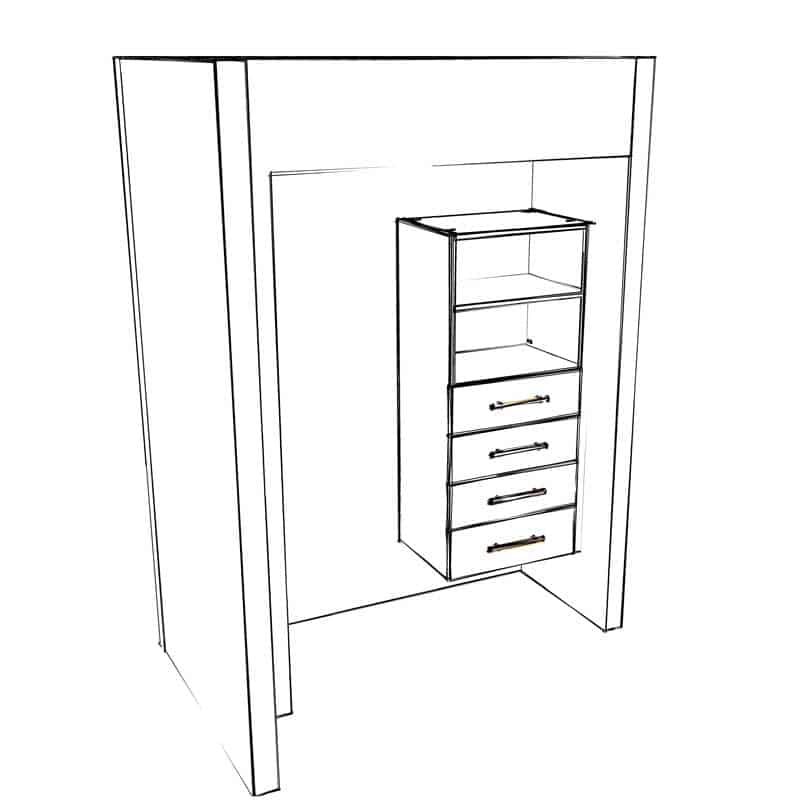 This DIY organizer is designed for the closet that has 30″ wide sliding doors. If you have a closet that has smaller doors, then you’ll need to adjust the measurements, otherwise the drawer doors will not close.