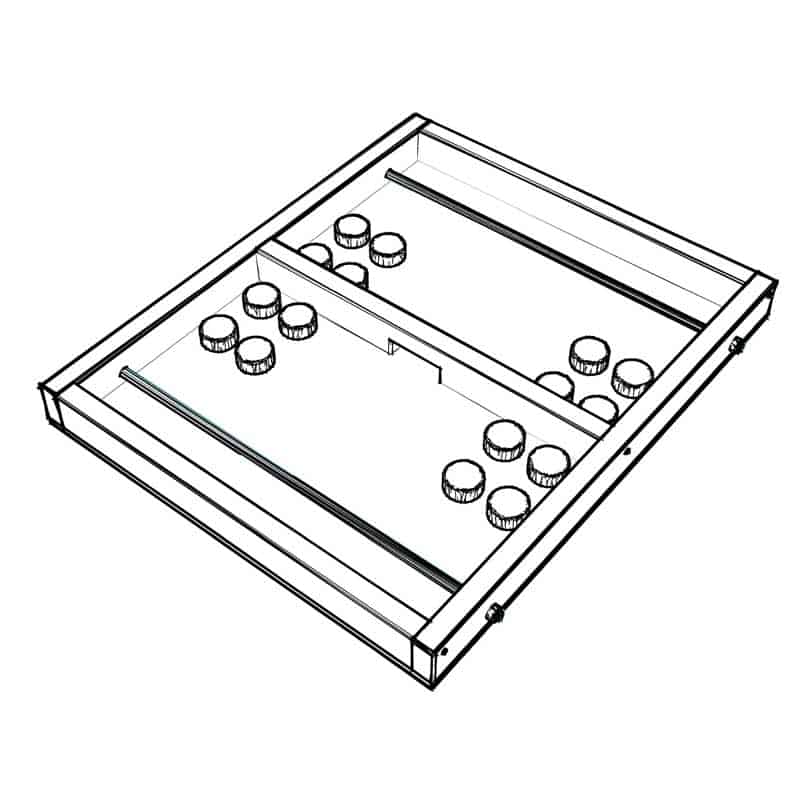 The table puck game is meant to be played by two players, each seated at opposite sides of the game board. In the center of the board, there’s a barrier with a small slot cut into the center of it; this is where each player will aim their puck, trying to shoot it through to the opponent’s side of the board.